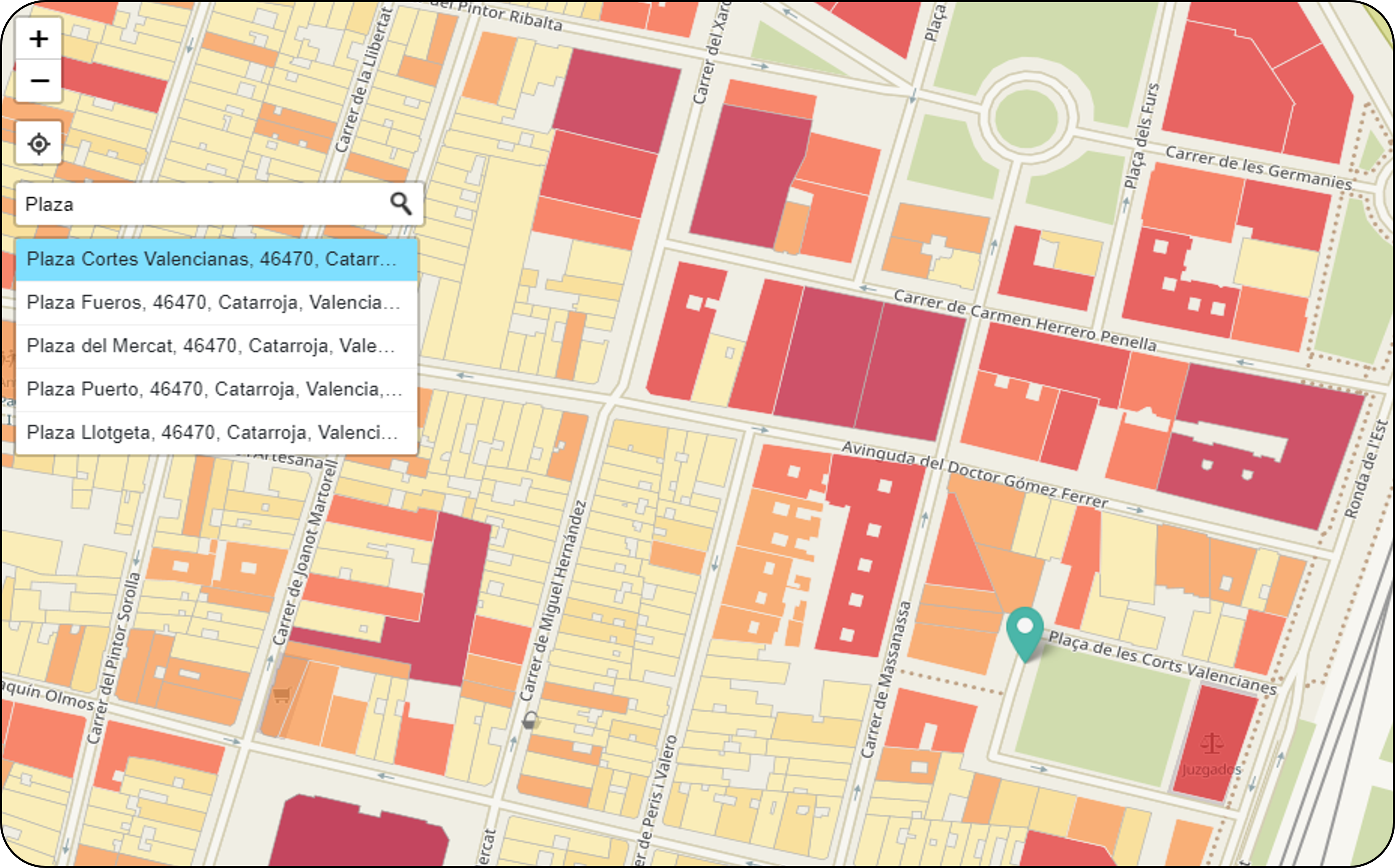 Para ayudarte puede usar el buscador de direcciones que aparece arriba a la izquierda del mapa.